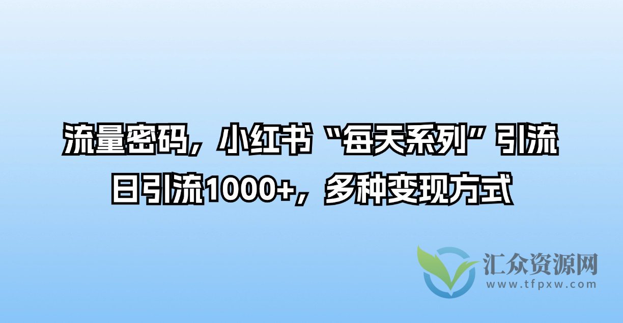 课程来自于 流量密码,小红书“每天系列”引流,日引流1000+,多种变现方式【揭秘】