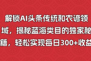课程来自于解锁AI头条传统和农谚领域,揭秘蓝海类目的独家秘籍,轻松实现每日300+收益