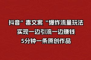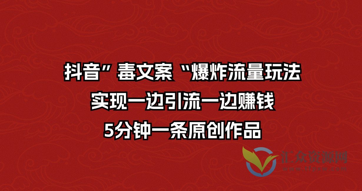 课程来自于 抖音”毒文案“爆炸流量玩法,实现一边引流一边赚钱,5分钟一条原创作品【揭秘】