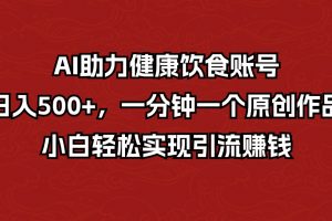 课程来自于 AI助力健康饮食账号,日入500+,一分钟一个原创作品,小白轻松实现引流赚钱【揭秘】