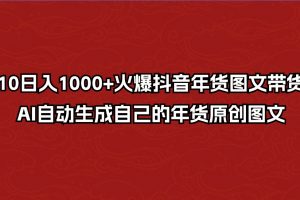 课程来自于 10日入1000+火爆抖音年货图文带货,AI自动生成自己的年货原创图文