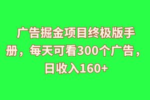 课程来自于 广告掘金项目终极版手册,每天可看300个广告,日收入160+