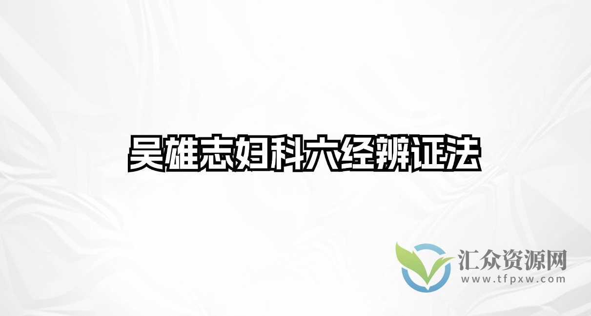 课程来自于 吴雄志妇科六经辨证法(9.46GB)