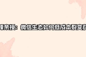 课程来自于 鉴锋亲授:微信生态如何低成本裂变获客