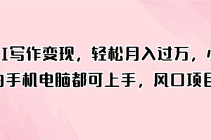 AI写作变现,轻松月入过万,小白手机电脑都可上手,风口项目【更多课程www.hzspzy.com】.txt