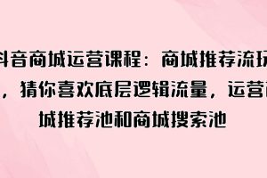 课程来自于 抖音商城运营课程:商城推荐流玩法,猜你喜欢底层逻辑流量,运营商城推荐池和商城搜索池