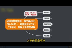 课程来自于 加班撸音浪直播,每天两小时,日入1000+,直播话术才3句,3天起号,普通人快速拿结果