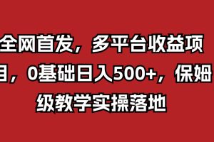 课程来自于 全网首发,多平台收益项目,0基础日入500+,保姆级教学实操落地【揭秘】