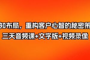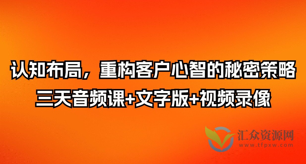 课程来自于 认知布局,重构客户心智的秘密策略三天音频课+文字版+视频录像