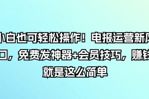 今天给大家分享一个小白可轻松操作!电报运营新风口,免费发神器+会员技巧,赚钱就是这么简单。