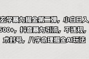 课程来自于 玄学暴力掘金第二弹,小白日入500+,抖音暴力引流,不违规,术封号,八字命理掘金AI玩法