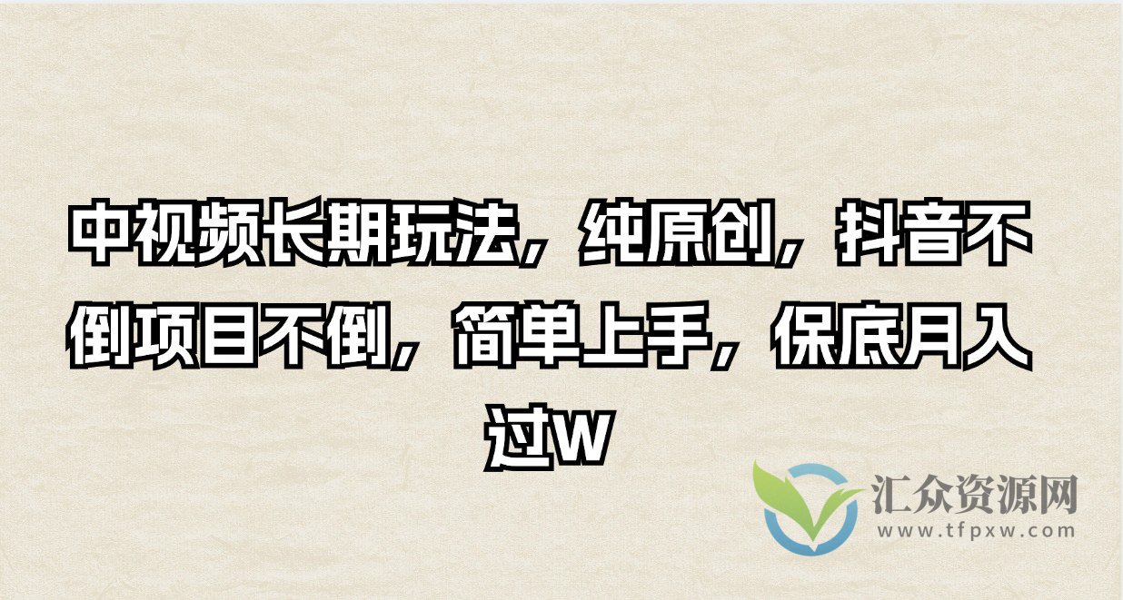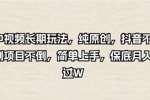 课程来自于 中视频长期玩法,纯原创,抖音不倒项目不倒,简单上手,保底月入过W
