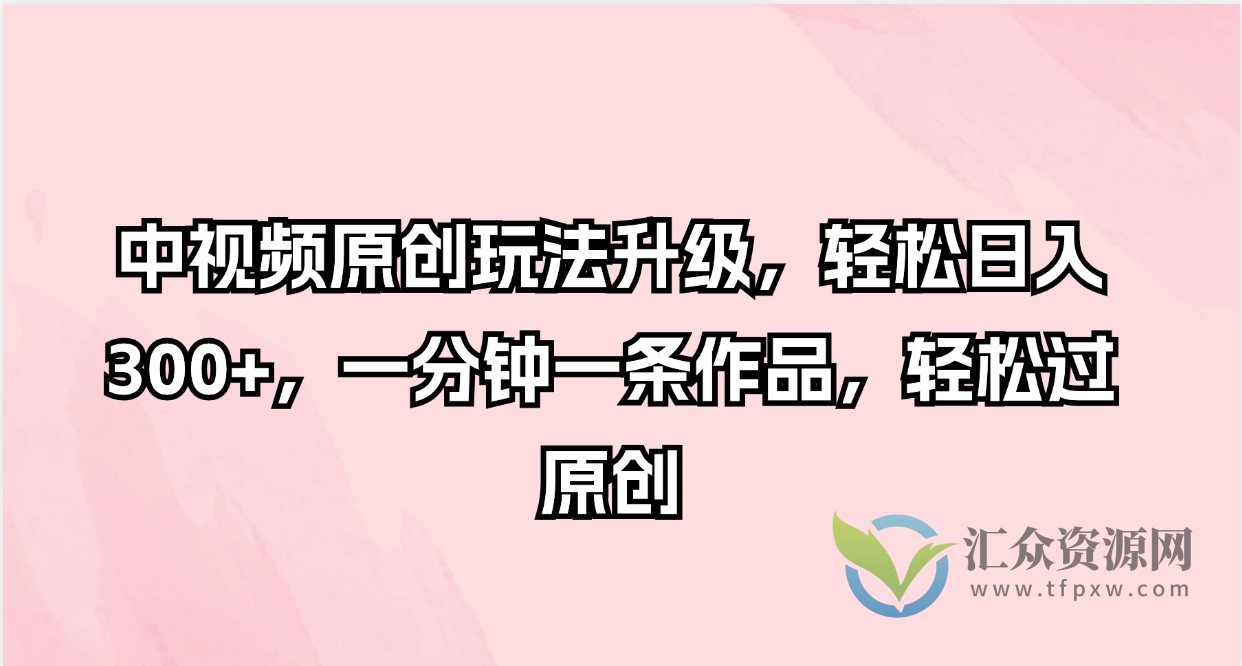 课程来自于 中视频原创玩法升级,轻松日入300+,一分钟一条作品,轻松过原创【揭秘】