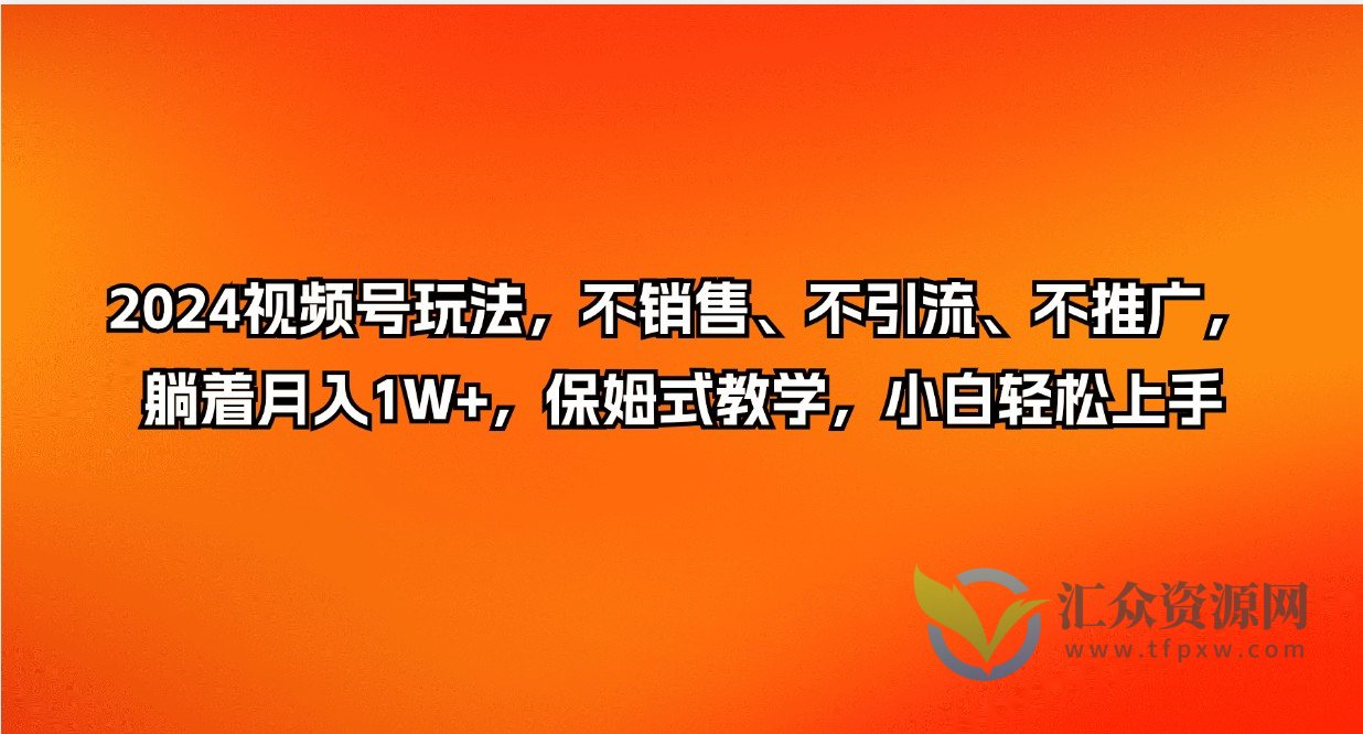 课程来自于 2024视频号玩法,不销售、不引流、不推广,躺着月入1W+,保姆式教学,小白轻松上手