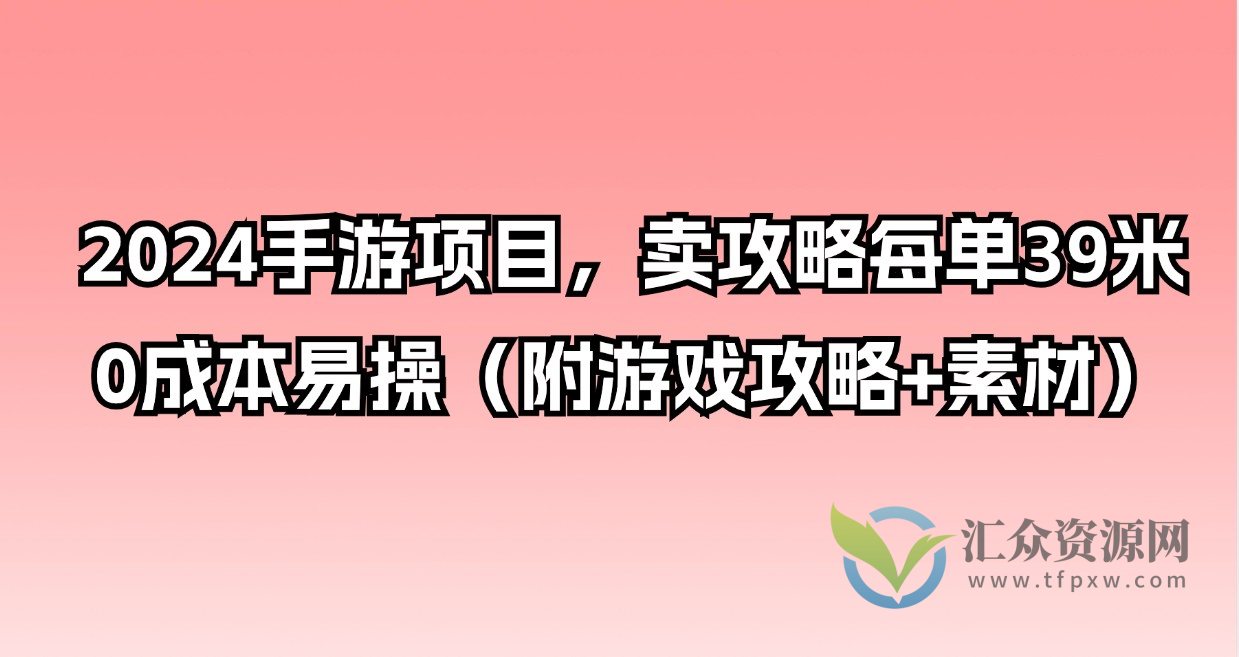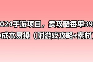 课程来自于 最新手游项目,卖攻略每单39米,0成本易操(附游戏攻略+素材)