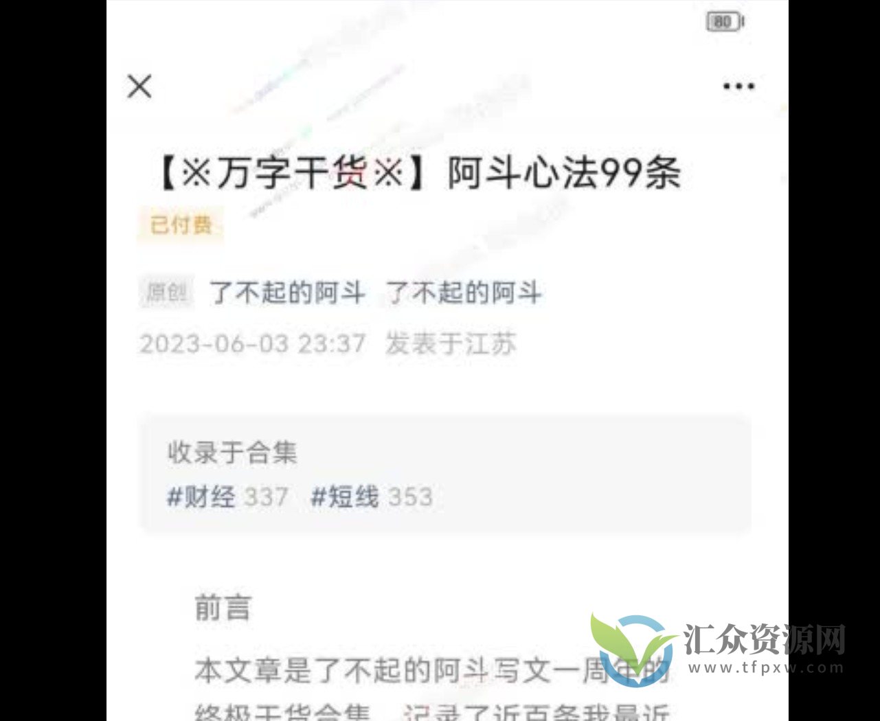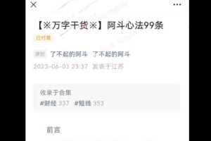 本文章是了不起的阿斗写文一周年的终极干货合集.记录了近百条我最近两年做情绪超短、龙头战法、趋势投机的一些核心心法体悟,都是非常具有实战意义的指导性心法,价值万金。