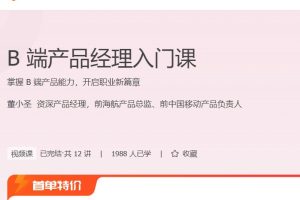 课程来自于 董小圣:B端产品经理入门课 掌握 B 端产品能力,开启职业新篇章
