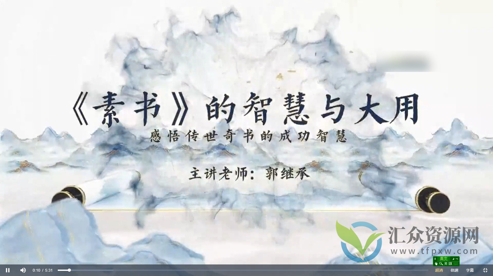 课程来自于 【继承之道】郭继承视频课程《素书》的人生智慧 素书的智慧与大用 感悟传世奇书的成功智慧168-17集