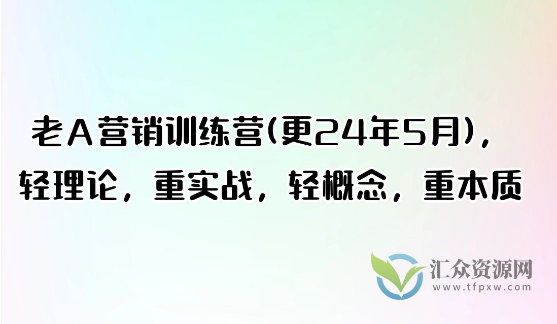 课程来自课程来自老A的营销陪跑训练营。只适合中小企业和初创企业的老板或营销、市场、品牌等部门负责人及从业人员。不推荐没有营销实战需求的纯小白或学生学习。轻理论,重实战,轻概念,重本质。