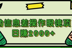 借助信息差操作眼镜项目,20-50一副卖出去,每日能出100多单,日赚2000+。