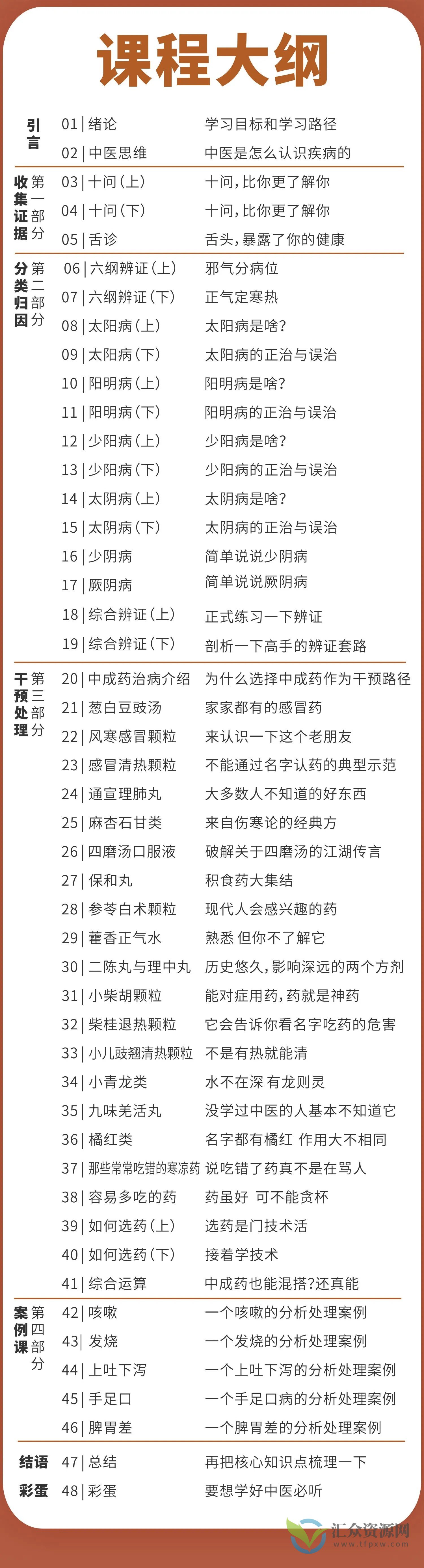 中成药辨证使用课程,适用于对疾病有正确的认知(最好有课程A基础),在不帮倒忙的基础上,希望有能力正确干预的父母、月嫂、孕妈等。学完之后,可以正确的分类疾病(辨证施治),用非处方中成药解决小孩子80%的健康问题。