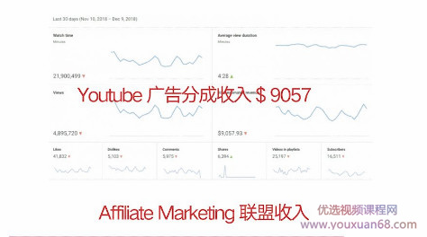 国内的知名的视频网站优酷,国内名气很大,但放到油管面前没法比(全球份额45% vs 3%)。巨大的流量,巨大的用户,必然是巨大的赚钱机会!!!而且Youtube可以在视频的描述和内容里面加入推广信息(视频描述区直接上链接),而我们只需要利用这个机会,推广别人的产品,无论是实体产品还是虚拟服务,都能够获得不菲的佣金。这种赚钱方式在国外叫做Affiliate Marketing,是一种非常成熟和靠谱的网络赚钱的方法。很多人包括我就是以此为职业,完全可以作为正规长久的谋生手段。这个行业有亚马逊、谷歌这样顶尖的参与者,也有不计其数的affiliate network(联署营销联盟)和affiliate。