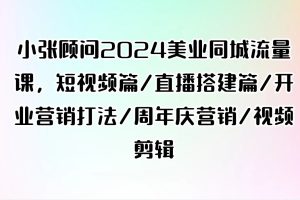 小张顾问2024美业同城流量课,短视频篇/直播搭建篇/开业营销打法/周年庆营销/视频剪辑