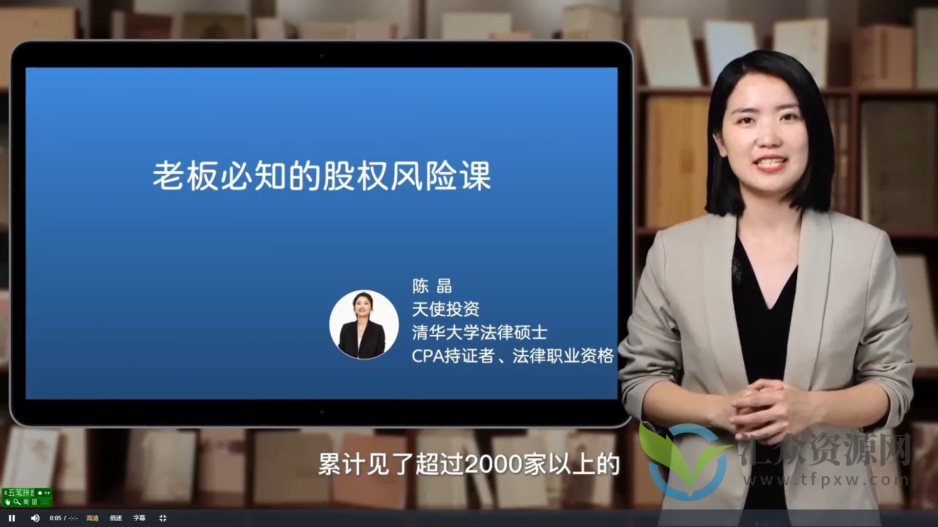 本课程基于陈晶的《人人都能听懂的股权课》精心制作,共包含17讲,系统介绍了创业过程中常见的股权问题及其解决方案。课程内容覆盖了股权分配、控制权维护、股东权益、股权激励等多个方面,旨在帮助创业者规避股权陷阱,掌握公司治理技巧,确保企业稳定发展。通过分析真实案例,课程深入浅出地阐述了股权相关的法律风险和商业策略,为广大创业者提供了实用的指导和建议。无论您是初创企业的创始人,还是正在成长中的企业管理者,本课程都将助您精通股权知识,从容面对企业运营中的各种挑战。