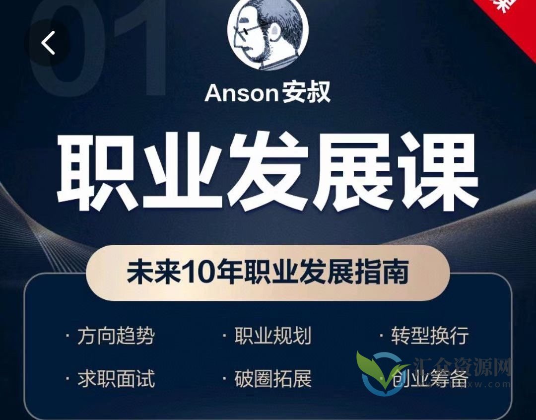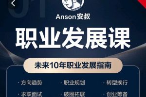 《Anson安叔—职业发展课:未来10年职业发展指南》是一套全面深入的职业发展课程,旨在帮助年轻奋斗者把握未来趋势,实现自我价值。课程涵盖未来十年职业发展的各个方面,包括行业趋势、职业前景、人工智能的影响、稀缺能力的培养、企业组织的演化、职业生涯规划、职场危机应对、个人优势的发掘与强化等。