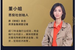 2025年思投社董小姐-新闻财经解读 董小姐 思投社创始人 原《财经》杂志资深金融调查记者 超12年金融行业经验,让她具备了金融行业内部人、媒体观察者双重视角,精准解读财经新闻。