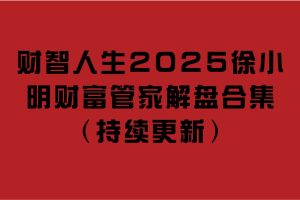 课程来自于 财智人生2025徐小明财富管家解盘合集(持续更新)